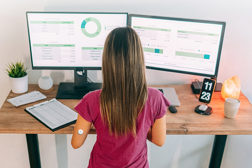 A CGM is a sensor placed just under the skin, usually on the arm or abdomen, that continuously measures glucose levels. The data is sent wirelessly to a smartphone, receiver or insulin pump. This allows users to see how their glucose levels change throughout the day — including during meals, exercise, stress and sleep.
