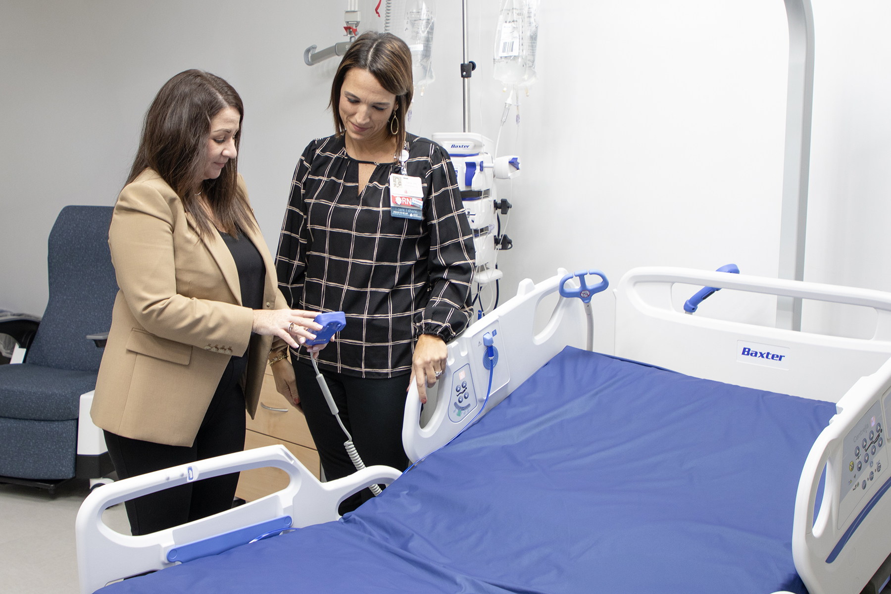 As we prepare for the opening of our new hospital, we’re excited to partner with Baxter as our preferred supplier of innovative medical equipment. Pictured, Med Surg Manager Carrie Salatin meets with Rachel Williamson, Baxter’s Director of Global Marketing Patient Support Systems, for a hands-on demonstration of the new beds to be installed on our inpatient units.