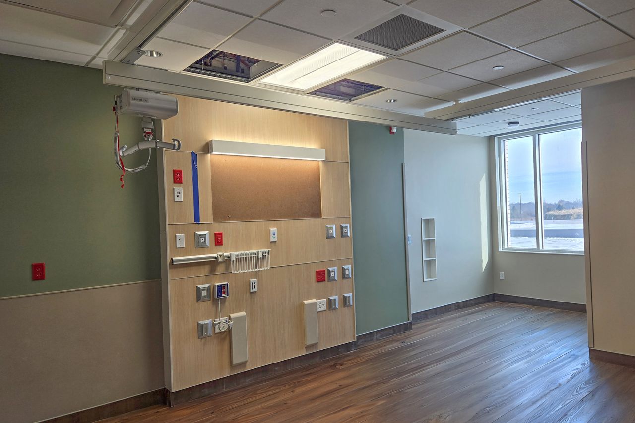 Ceiling-mounted patient lifts have recently been installed in patient rooms at our new hospital. These lifts enhance safety and comfort for our patients while also reducing the risk of injury for our caregivers.